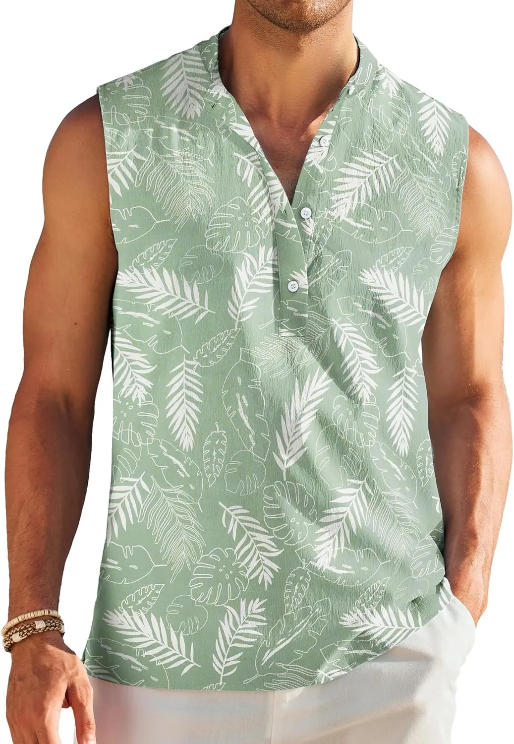 COOFANDY Sleeveless Beach Shirts for Men Summer Tank Shirts Casual Henley Tank Top